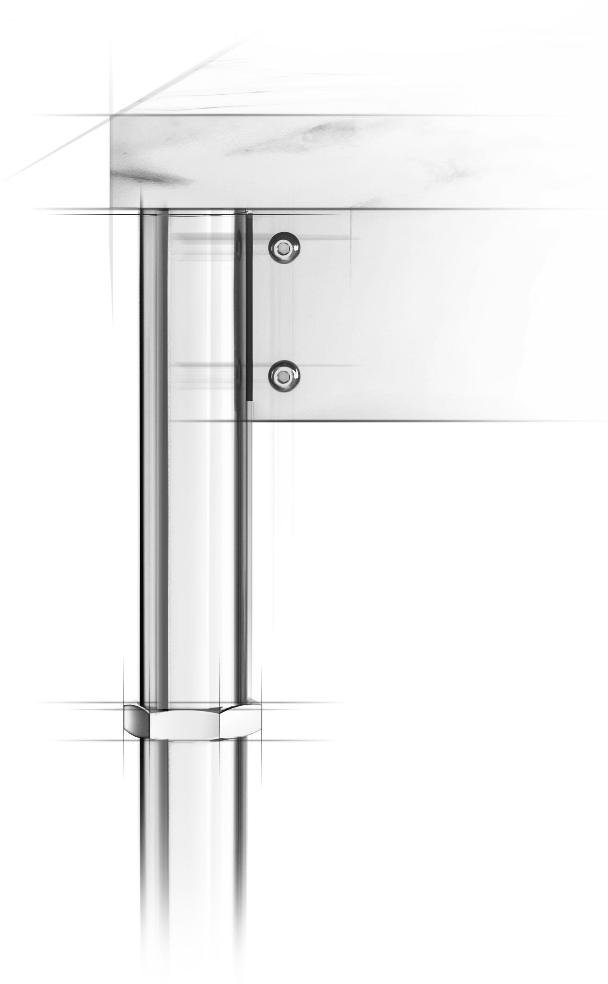 The Clip Shelf Support provides an extremely minimal option for supporting a glass or stone shelf. This unique system shows no visible components on the front of the legs, thereby providing an uninterrupted view of the entire leg as viewed from the front of the washstand.
