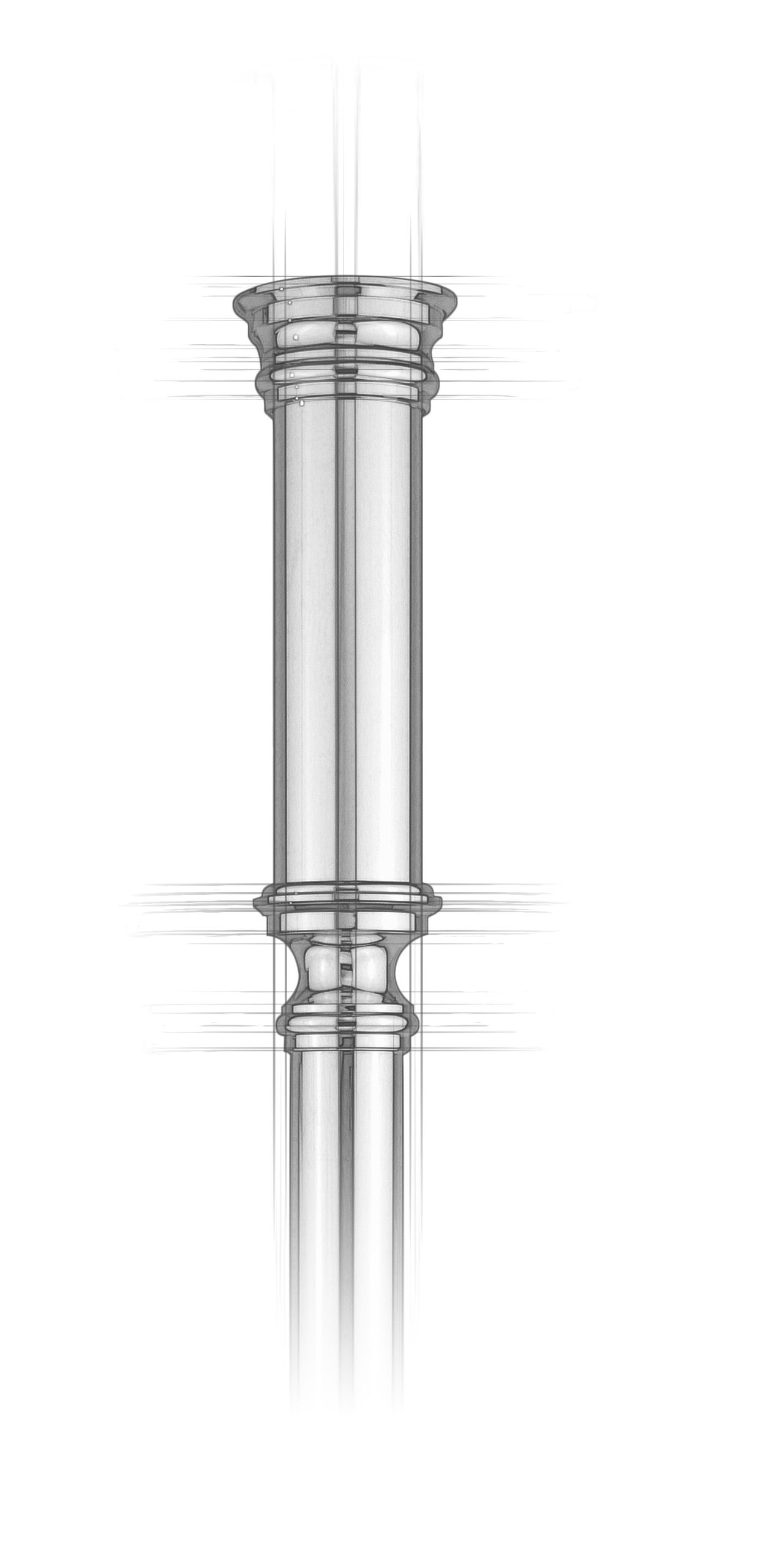 The Embry makes an elegant statement with its sturdy 2” diameter head transitioning through a sculpted neck into the leg’s gentle taper. The distinct contrast in diameter defines this sophisticated silhouette.