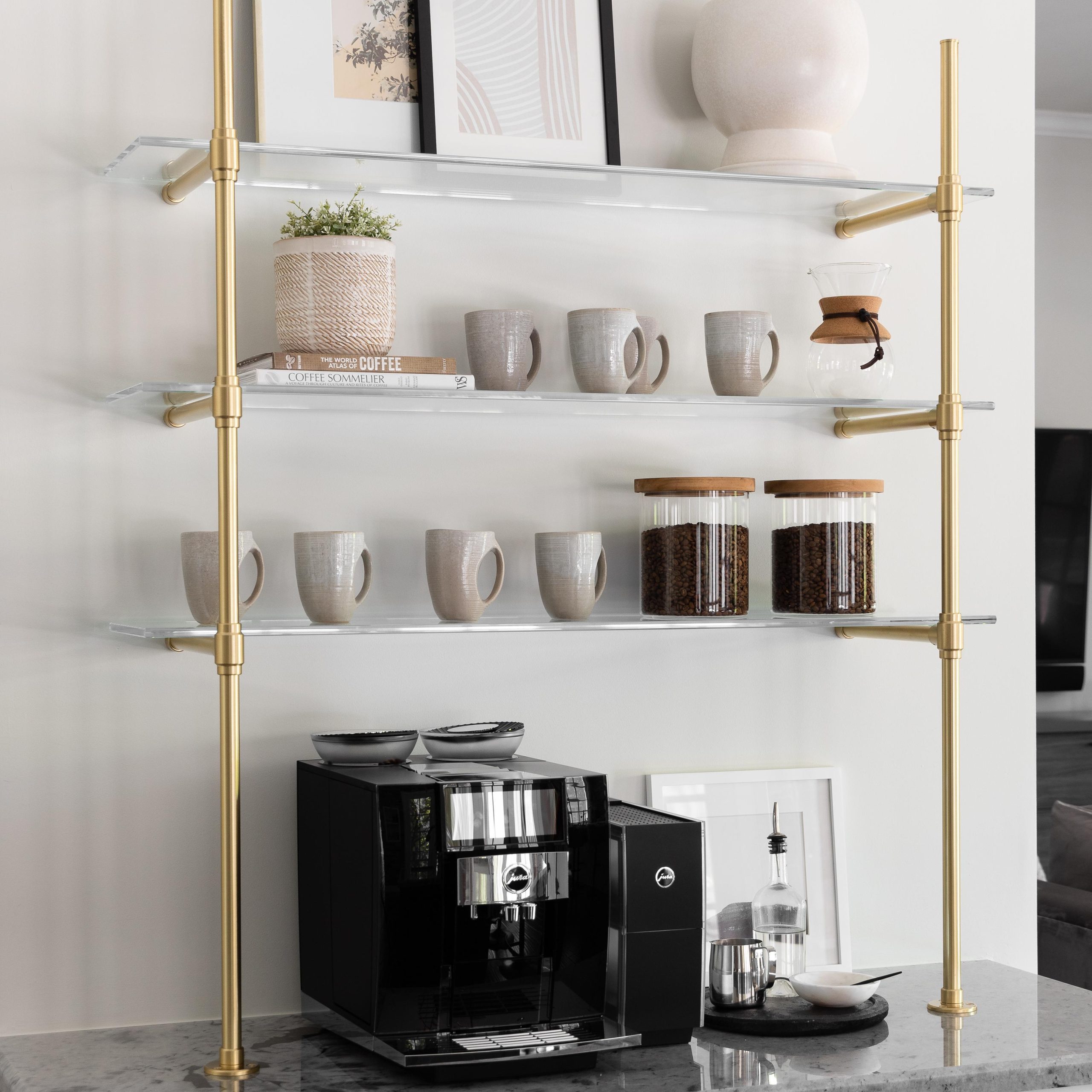 Palmer offers custom Free Standing Gallery Rail systems, crafted to elevate both form and function. Each rail features solid brass, CNC-machined posts for exceptionally crisp detailing and a refined fit and finish. Designed with versatility in mind, our Gallery Rails can also be seamlessly integrated with Palmer shelving units—adding both a decorative and practical barrier to keep items securely in place.
